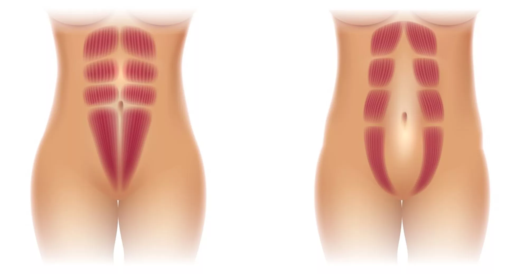 На фото: слева — нормальное состояние мышц, справа — диастаз