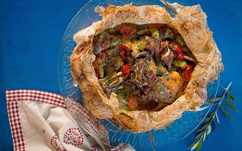 Важное место в кулинарных традициях Греции занимают дары моря: креветки, кальмары, мидии. Одно из самых изысканных блюд — осьминог с оливковым маслом и виноградным уксусом. А вот мясные блюда в этой средиземноморской стране не нашли такого широкого распространения, но те, что есть — настоящие кулинарные шедевры. Гордость Греции — клефтико — баранина, запеченная с овощами, белым вином, сыром и приправленная ароматными специями.