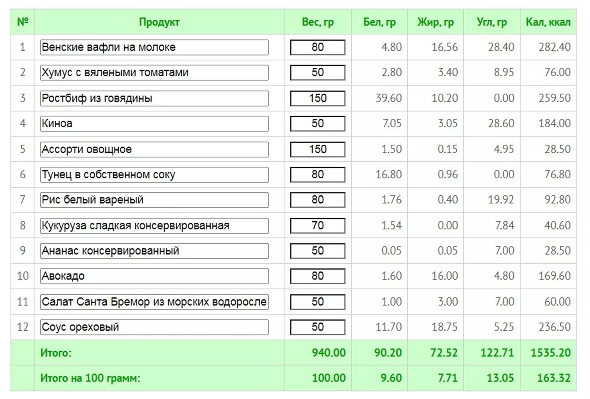 «За неделю у меня не повторилось ни одно блюдо, — поясняет Маша Шелушенко. — При этом меню отличает максимальное разнообразие овощей, фруктов, зелени и белка с углеводами. А главное, что большинство таких блюд можно собрать за 10-15 минут, если использовать заготовки».