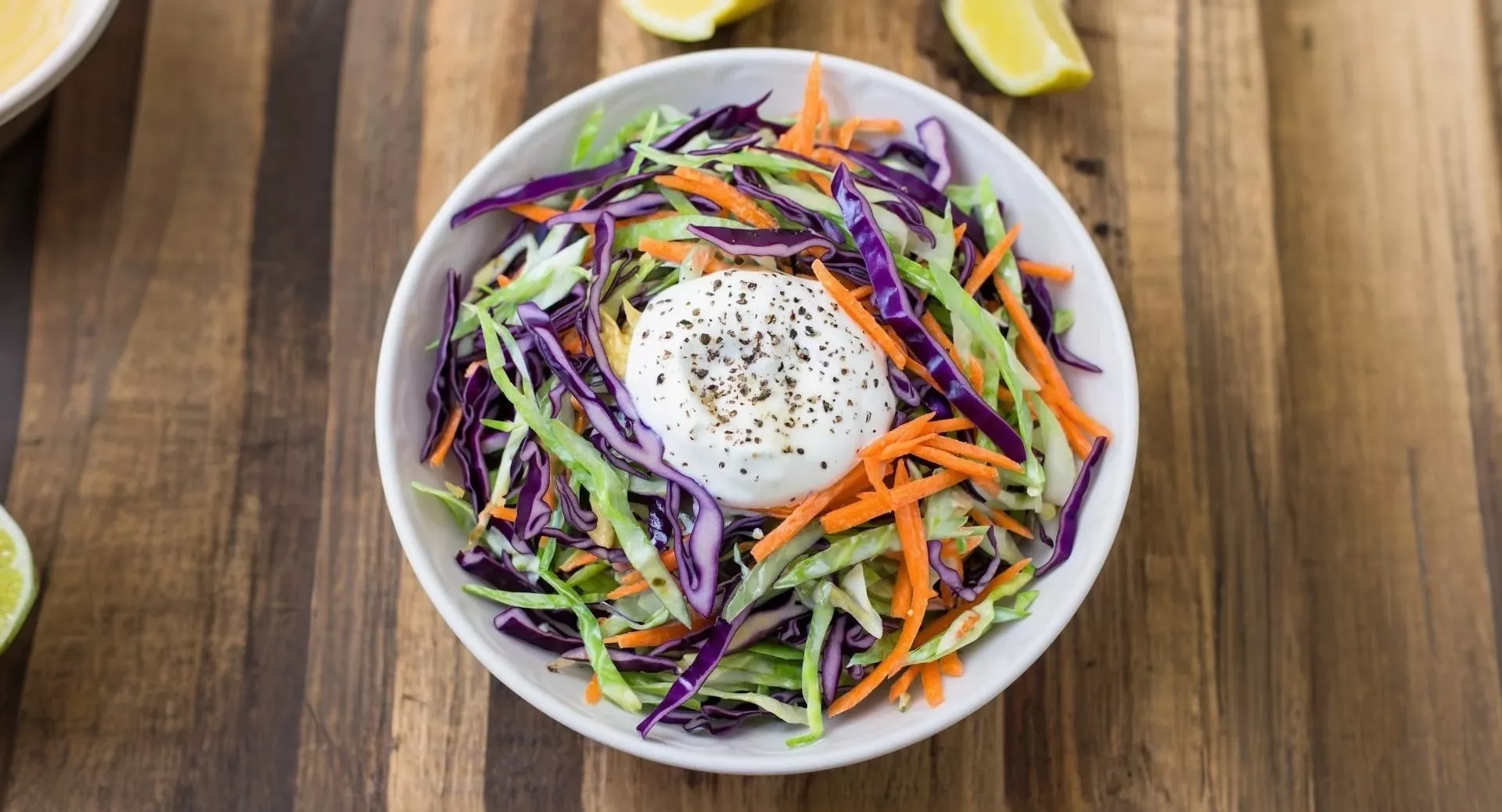Инструкция. Нарежьте соломкой капусту, натрите на терке морковь и переложите овощи в миску. Смешайте лимонный сок, горчицу, сахар и йогурт и заправьте овощи. Посолите и поперчите.