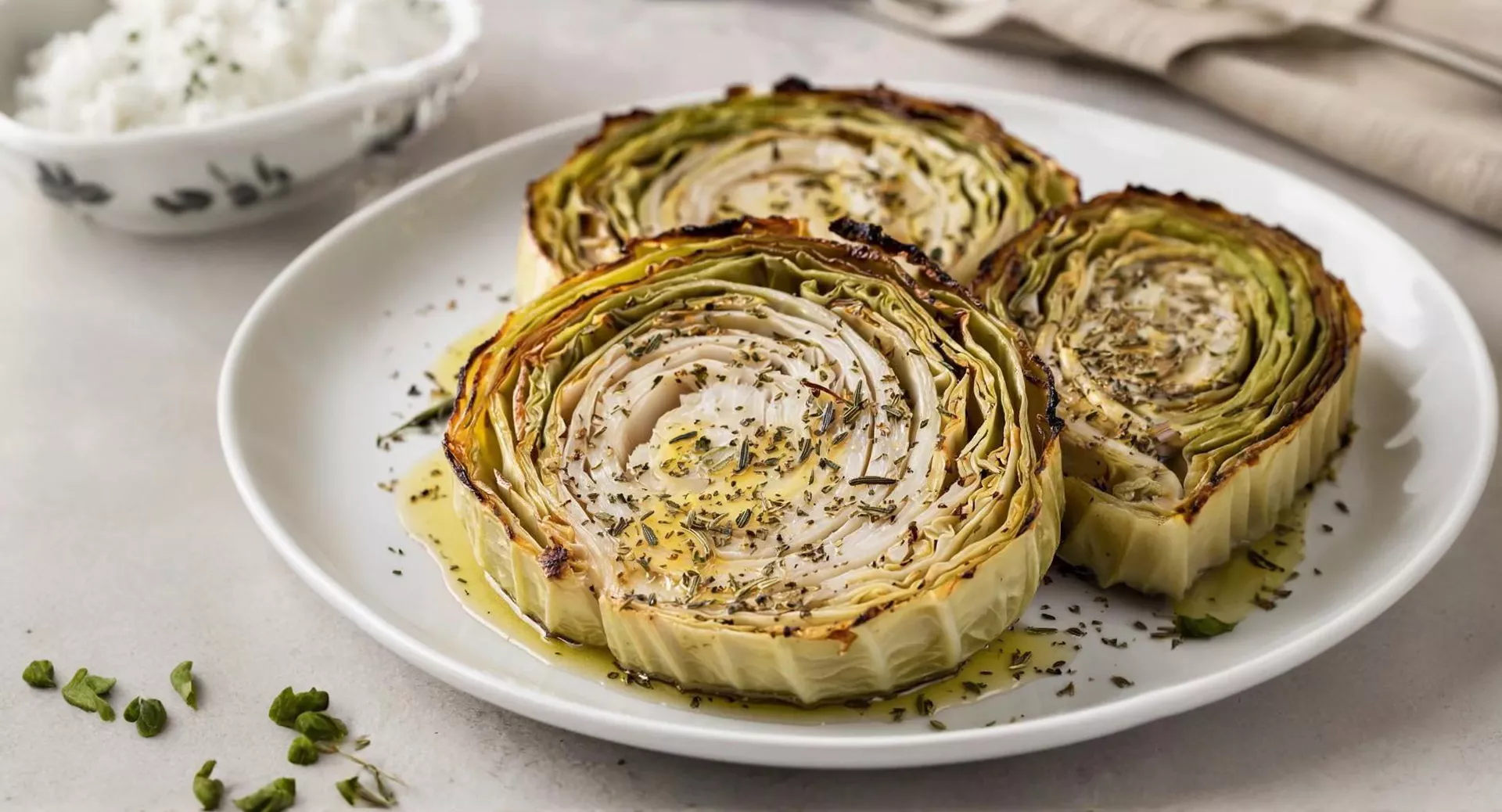 Инструкция. Капусту разрежьте на части толщиной не менее 1 см. Полейте маслом, присыпьте травами и посолите с обеих сторон. Выложите на противень и запекайте в духовке 25 минут при температуре 200 °С.