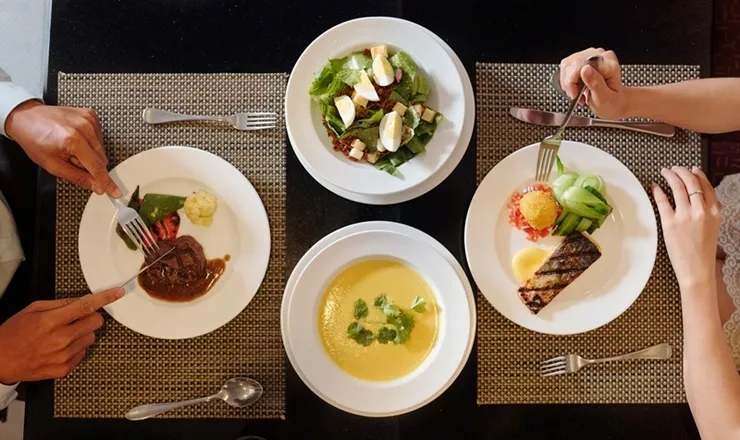 Приучить себя к медленному приему пищи помогает «правило одной вилки». Возьмите столовым прибором порцию еду и в рот. Медленно пережевывайте пищу — не менее 20 жевательных движений. После снова возьмите прибором следующую порцию.
