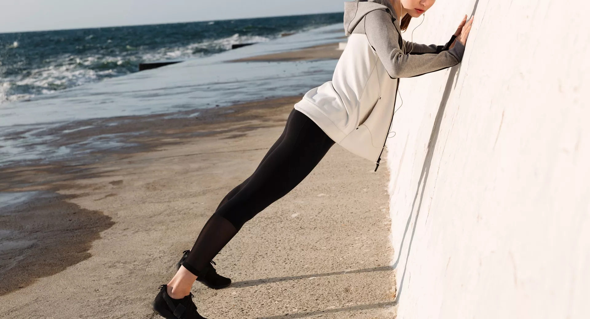 - Встаньте лицом к стене на расстоянии вытянутой руки от нее. Стопы поставьте на ширину плеч.