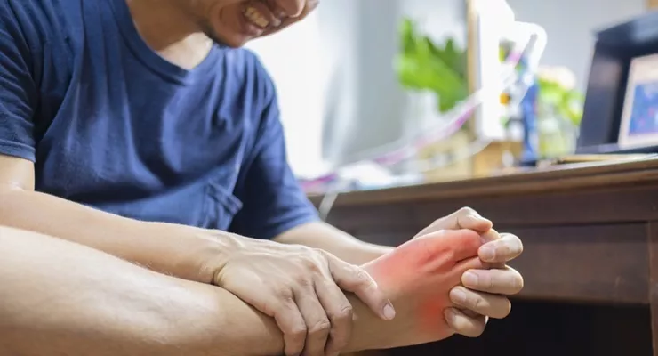 Это системные заболевания, которые в том числе могут отражаться и на здоровье стоп. К ним относятся подагра и ревматоидный артрит. Первое заболевание связано с нарушением обмена мочевой кислоты, второе — с хроническим воспалением соединительной ткани. «Подагра чревата отложением солей мочевой кислоты в суставах, в том числе и в зоне голеностопа, — объясняет Ирина Арар, врач-эндокринолог, диетолог. — Боли в этом случае будут локализованы в области соединения фаланг пальцев и плюсны. Часто данная область краснеет и отекает. Приступы подагрического артрита обычно сопровождаются повышением температуры и длятся около недели».