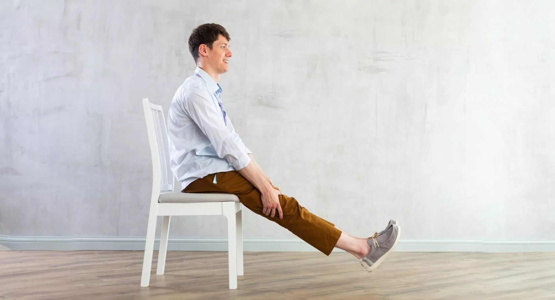 Встаньте прямо, стопы на ширине плеч. Руки опустите вдоль корпуса, сохраняйте естественное положение поясницы, не усиливайте в ней прогиб, не сутультесь. Мышцы пресса держите в тонусе. Плавно наклонитесь корпусом вправо, скользя правой рукой вниз по бедру. Не откланяйтесь корпусом назад или вперед, старайтесь двигаться телом в одной плоскости. Затем вернитесь в исходное положение и сделайте то же самое в другую сторону. Это один повтор. Выполните 20 таких или максимум за 60-120 секунд.